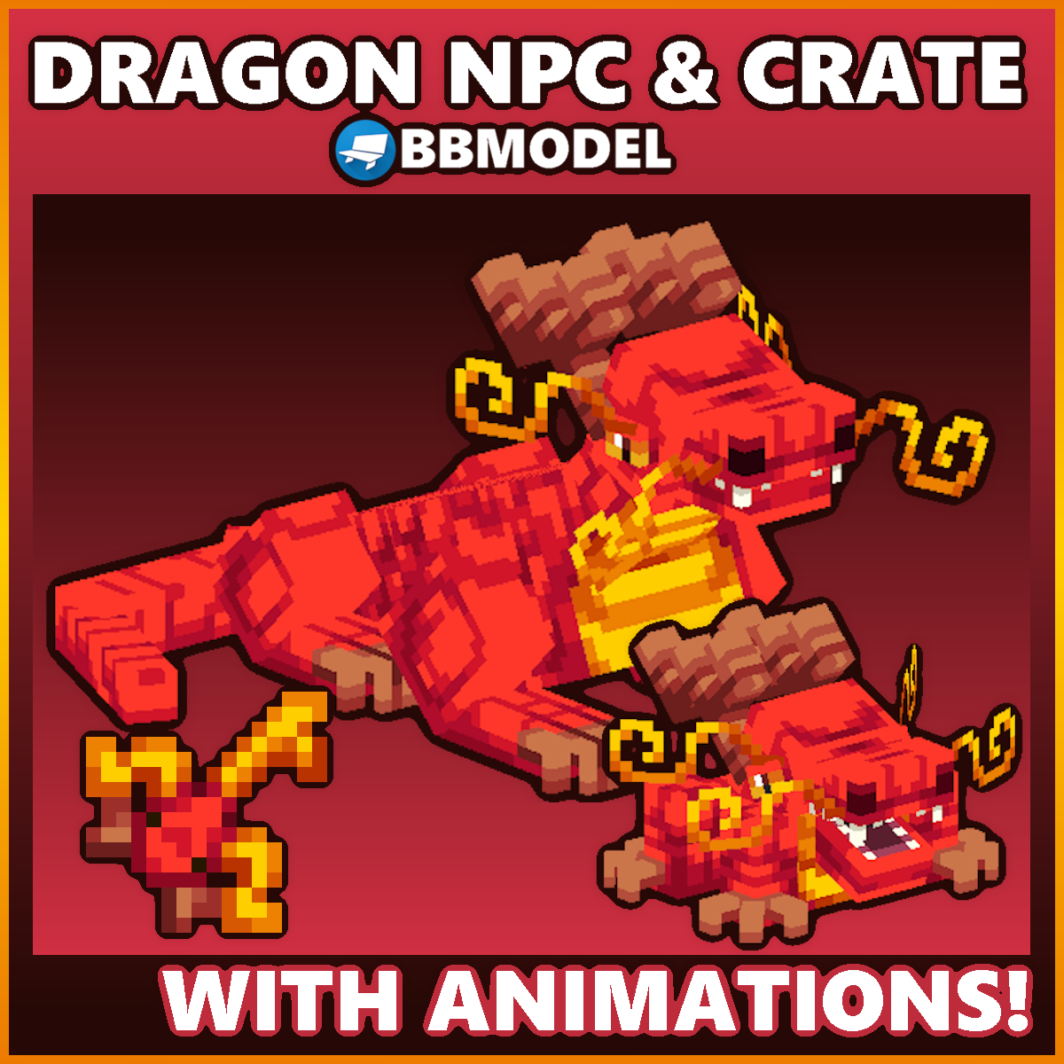 The Dragon NPC and Crate pack includes high-quality BBModels ready for implementation into your server. It features a Dragon NPC model with idle animation and ModelEngine compatibility, a detailed Dragon Crate model, and a matching Dragon Key sprite.