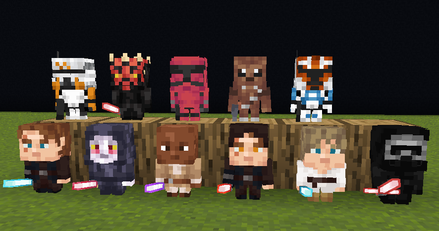 Barlex - Darth Maul - Sith Trooper - Chewbacca - 332nd Clone - Anakin Skywalker - Palpatine (Darth Sidious) - Mace Windu - Anakin Sith - Luke Skywalker - Kylo Ren